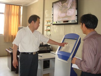 李朝品副院长在试用电子触摸系统