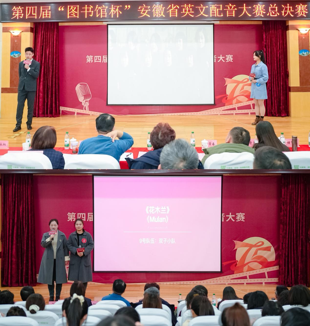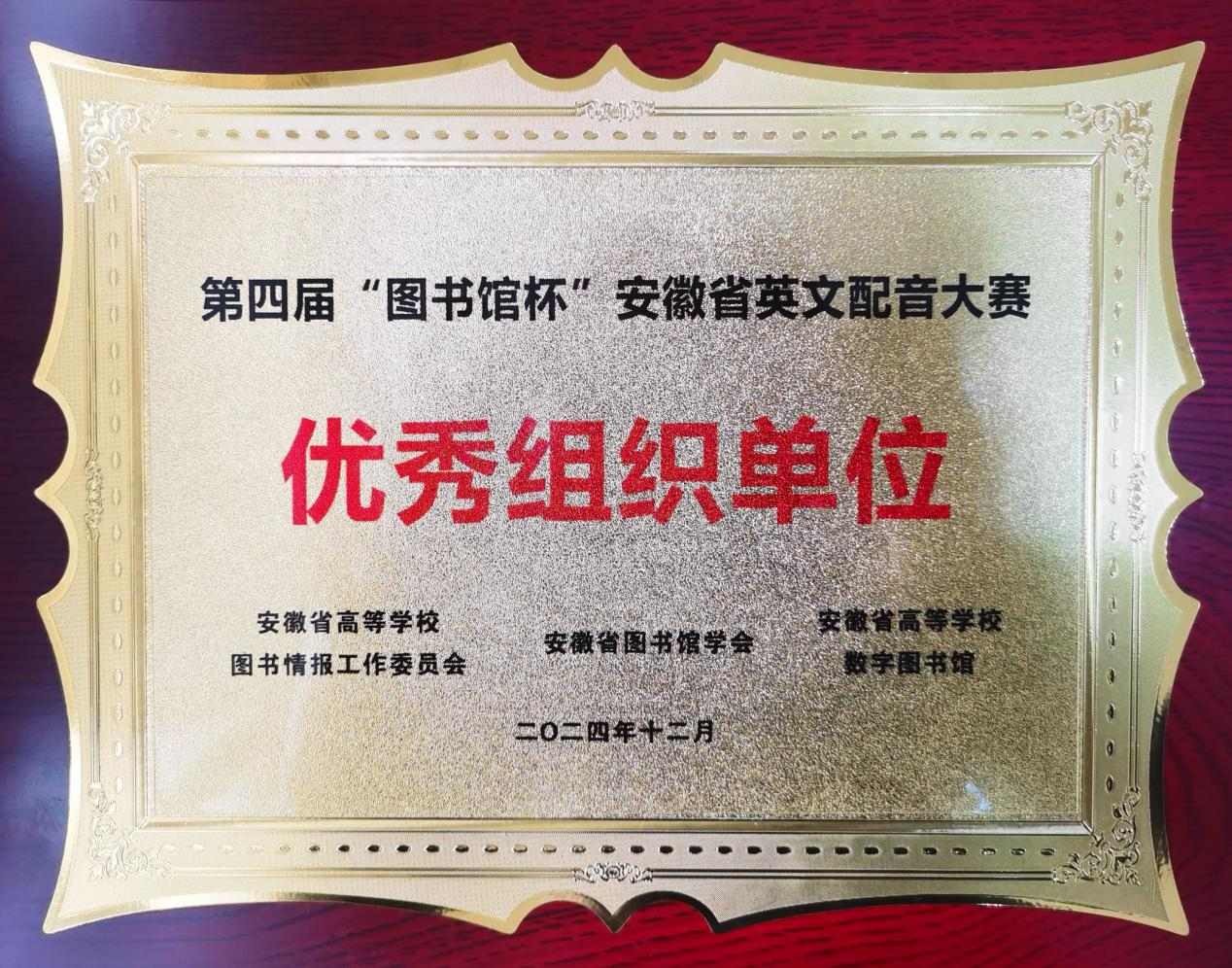 12月22日,由安徽省高等学校情报工作委员会、安徽省高等学校数字图书馆、安徽省图书馆学会主办的2024年第四届“图书馆杯”安徽省英文配音大赛在合肥市图书馆圆满落幕,我校师生作品获特等奖1项、二等奖1项,学校图书馆获“优秀组织单位。