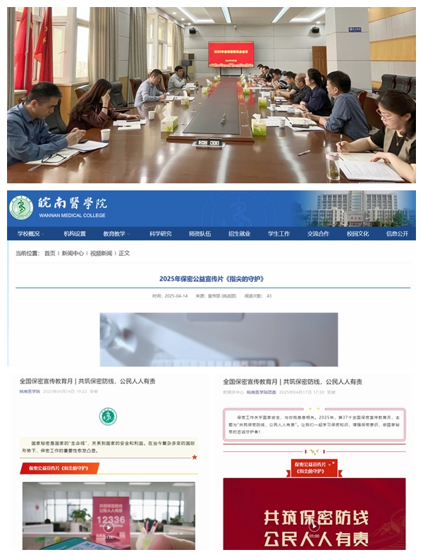 保密宣传教育月活动,紧绷保密之弦。学校召开保密委员会会议,组织校保密委成员单位学习上级文件精神,观看保密警示教育片,倡导师生共筑保密防线。学校开展保密宣传教育月活动,以“共筑保密防线,公民人人有责”为主题,在学校网站、微信公众号、电子大屏等平台播放保密公益宣传片《指尖的守护》,在宣传栏张贴宣传海报。