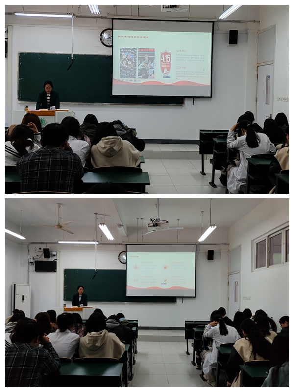 国门生物安全进校园,守护国门安全。检验学院联合芜湖海关开展 “国门生物安全进校园  海关带您了解疟疾” 宣讲活动。讲解员通过 PPT 和真实案例视频,详细介绍了“国门生物安全”的概念及其对国家生态安全和公共卫生安全的重要性,并讲解了疟疾的相关知识。宣讲结束后,海关工作人员分发科普手册和宣传海报,激发了学生守护国门安全的使命感。