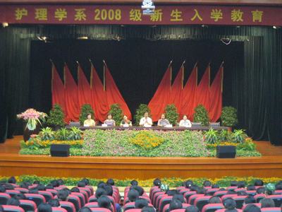 9月9日下午,护理学系在大学生活动中心举行2008级新生入学教育大会,章泾萍副主任、临床护理教研室、基础护理教研室、护理实验中心负责人、08级辅导员及全体2008级新生参加了大会。大会由护理学系朱丹副主任主持。