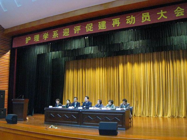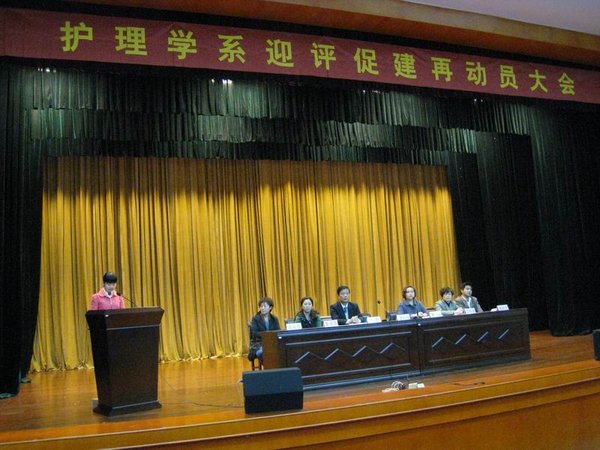 首先,护理学系党总支刘群书记做了《以评促建,为学校迎评做贡献》的报告。报告阐述了本科教学工作水平评估的重大意义,阐明了“以评促建,以评促改,以评促管,评建结合,重在建设”的二十字方针,要求全系师生牢固树立“校兴我荣,校衰我耻”的意识,统一思想,提高认识,艰苦奋斗,齐心协力,以实际行动为达到“评建创优”的目标做出贡献。
