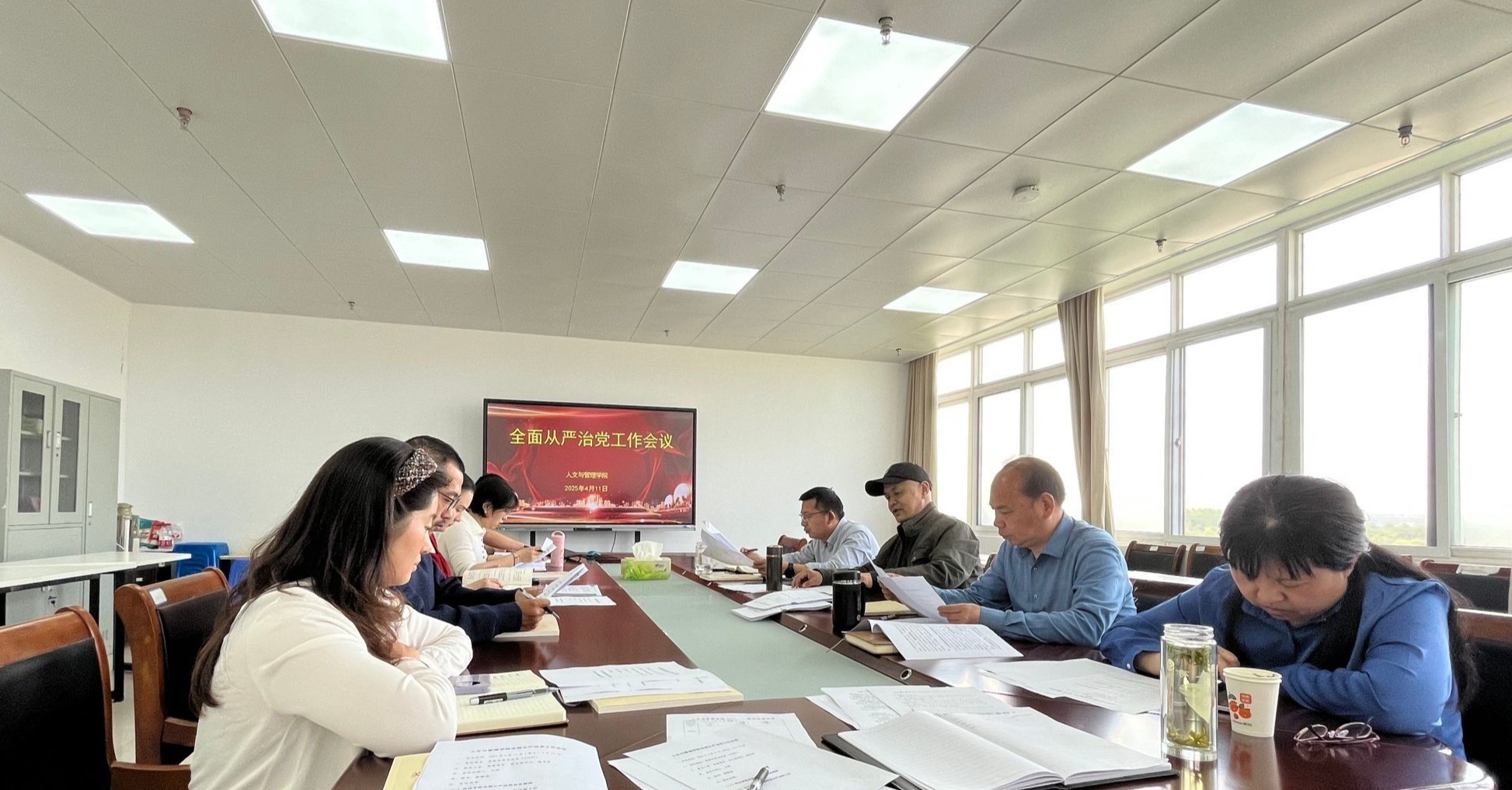 4月11日下午,人文与管理学院召开全面从严治党工作会议,深入学习贯彻上级部署要求,积极推进工作与责任落实。会议由学院党委书记王军主持,学院党委委员、各党支部书记参加。