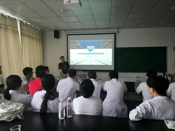 在开班仪式上,公共卫生学院院长金岳龙简要介绍了既往我校毕业生公共卫生执业医师考试的基本情况,希望通过此次培训进一步提高我校毕业生公共卫生执业医师实践技能考试通过率,并预祝即将参加考试的毕业生取得好成绩。