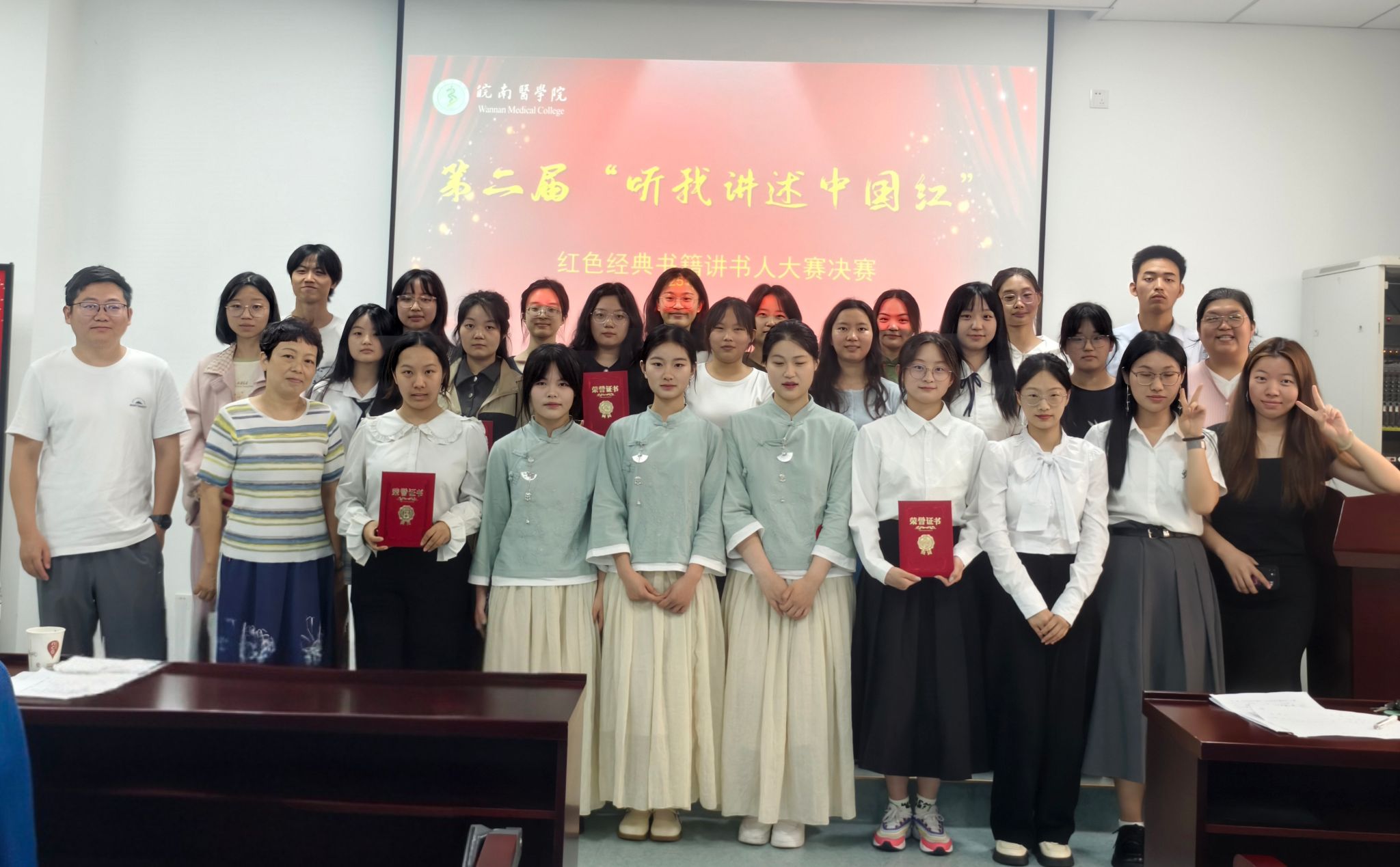 赛场上,选手们逐一登台进行自我介绍和才艺展示。伴随图片展示、影像资料播放等形式,演讲者一个个声情并茂地讲述了各种红色经典书籍中的动人故事,铿锵有力地表达了爱国情感。评审专家认真倾听每位讲书人的精彩演讲,分别从朗诵内容、朗诵技能、情感表达、整体效果四个维度进行综合评价。经过激烈角逐,最终评选出一、二、三等奖,其中药学院潘馨怡,麻醉学院王诗涵、高睿,护理学院邵惜时、刘琪、李雨晨3组获大赛一等奖。
