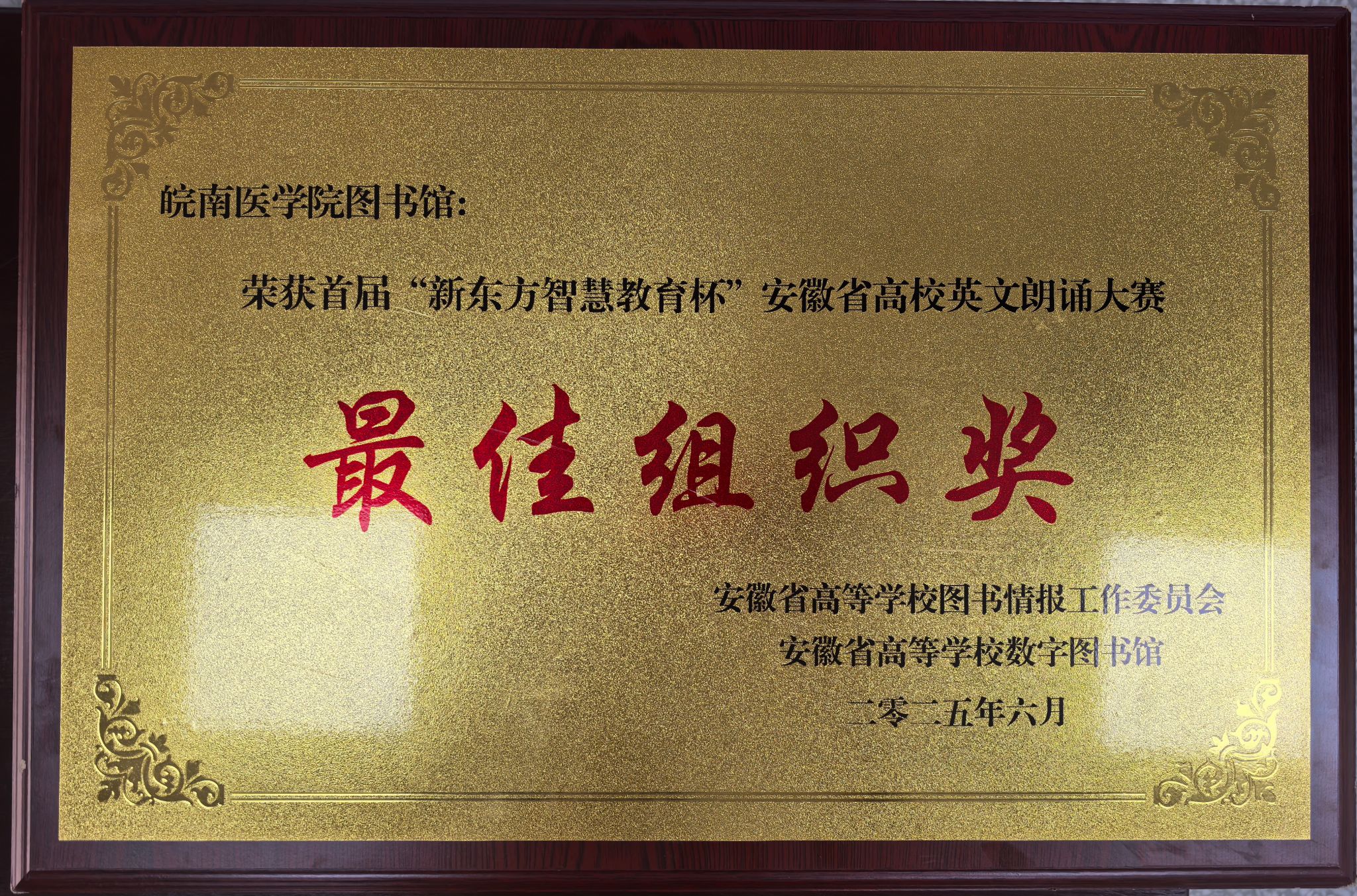 近日,由安徽省高等学校图书情报工作委员会、安徽省高等学校数字图书馆联合主办的首届“新东方智慧教育杯”安徽省高校英文朗诵大赛决赛在合肥师范学院圆满落幕。经过激烈角逐,我校学子表现优异,获本科组一等奖1项、二等奖1项,同时我校图书馆获“最佳组织奖”称号。