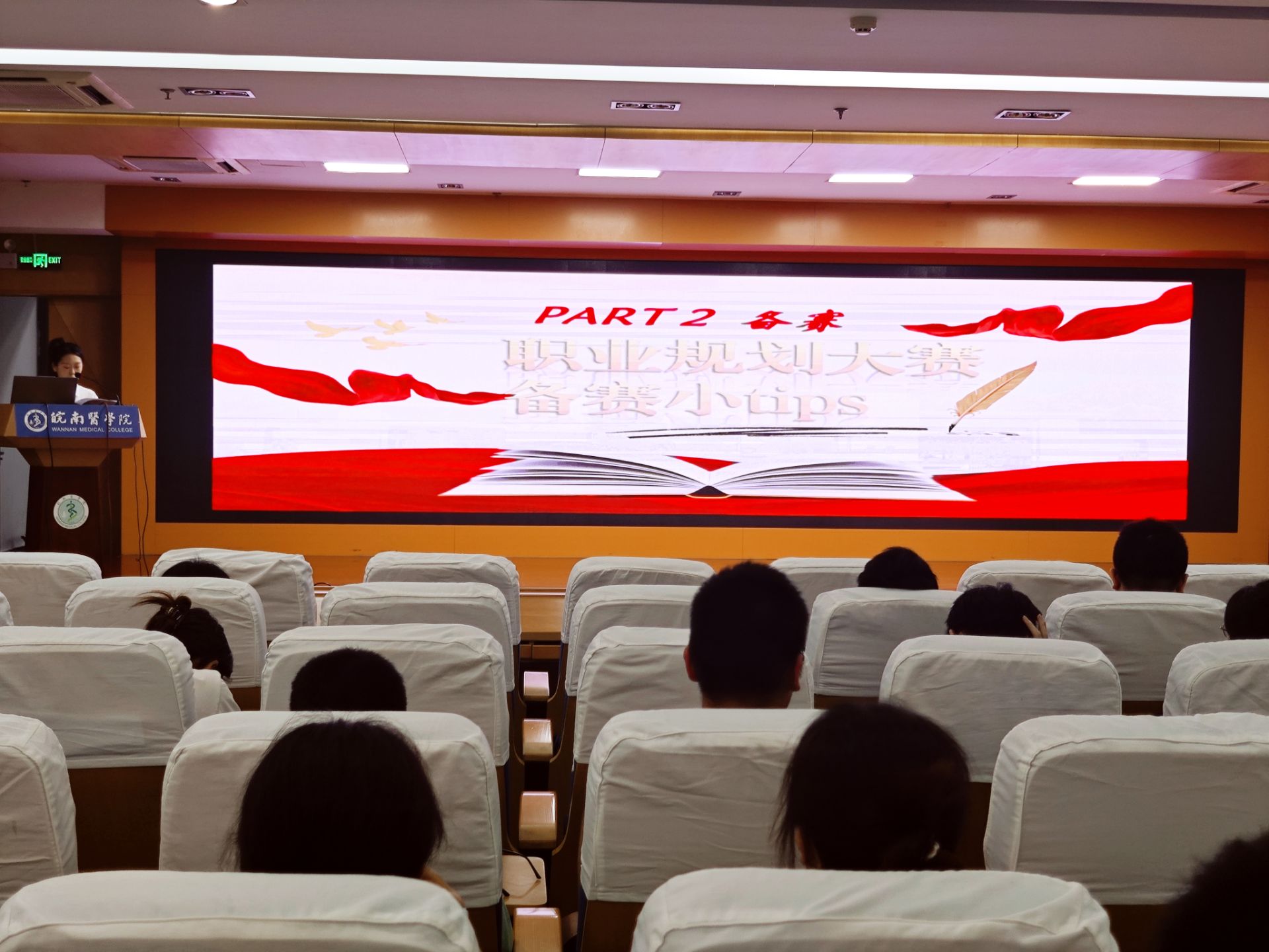 2022级临床专业包语婷同学带来“从社恐到社牛—职业规划大赛带给我的启示”的报告,分享自己突破自我、实现蜕变的经历。她讲述了自己参加职业规划大赛的过程和经验,表示在此过程中不断锻炼沟通能力和逻辑思维,最终在比赛中取得优异成绩。她鼓励同学们勇于挑战自我,以创新思维探索职业方向,积极在竞赛中积累成长动能。