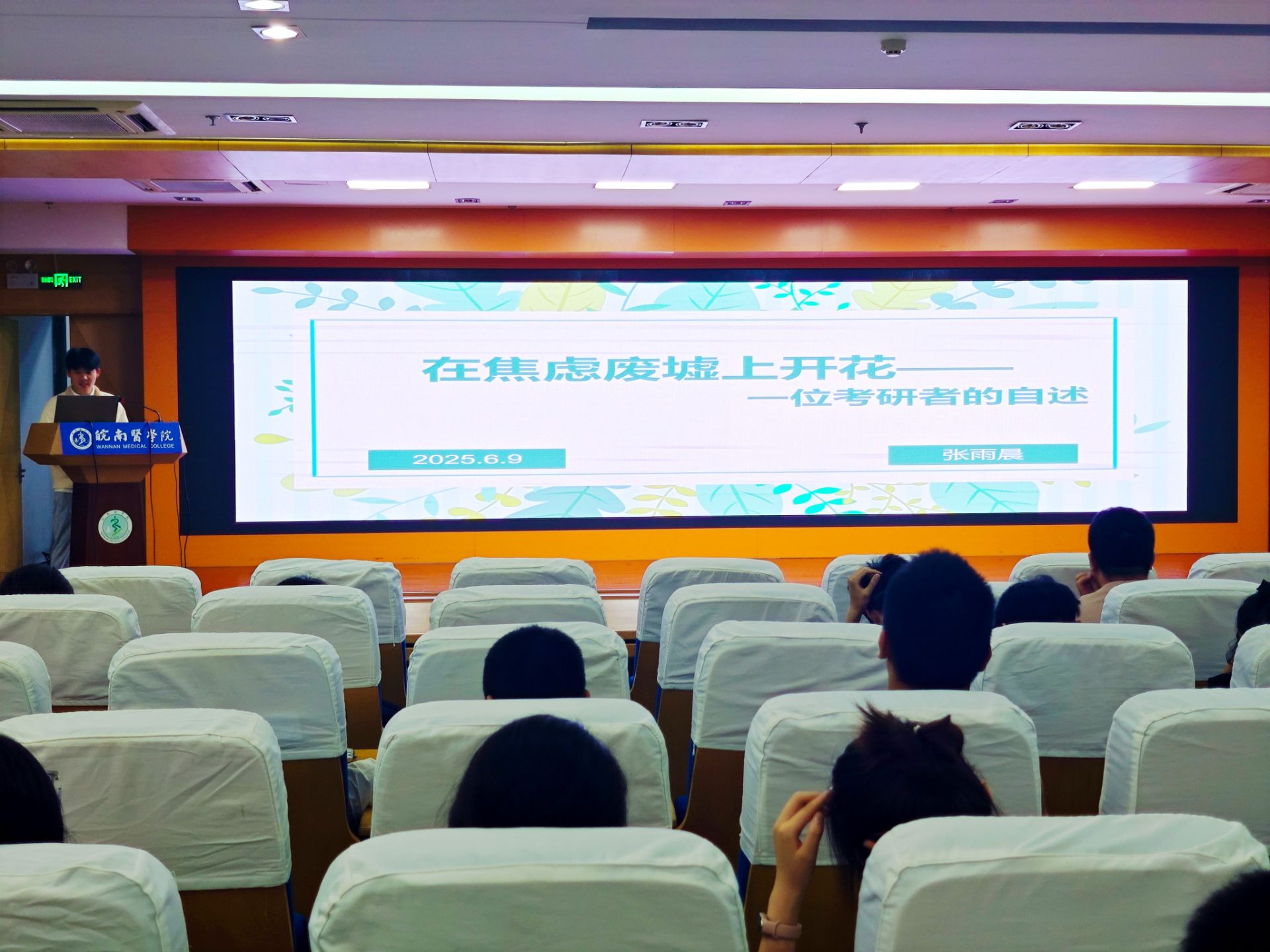 医学之路既需立足当下探索,也离不开对未来的追逐。2020级临床专业卢凯同学以“医路研途,青春圆梦”为题,讲述考研路上的坚持与收获。他详细介绍了自己的考研复习计划,包括时间安排、复习资料选择以及心态调整等。2020级免费定向班张雨晨同学带来“在焦虑废墟上开花—一位考研者的自述”,分享自己如何在焦虑中破局,最终实现梦想。她坦言,考研过程中难免会产生焦虑情绪,但关键是要学会如何应对。2020 级临床专业张睿同学以“多元历练赋能,成长照亮研途”为主题,分享在丰富历练中为考研蓄力的经验。他介绍了自己在大学期间参与科研项目、社会实践、志愿服务等经历,表示这些经历不仅丰富了自己的人生阅历,更培养了科研思维和团队协作能力,为考研打下了坚实的基础。