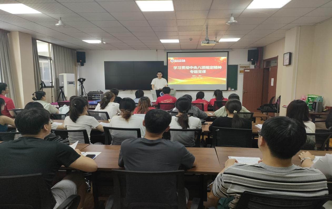 学院党委副书记、纪委书记黄侃以“从违纪违法典型案例中深刻反省推进中央八项规定精神落地落实”为题,为学生第二党支部党员讲授专题党课。他指出,中央八项规定精神是全面从严治党的重要抓手,是加强作风建设的长期性、经常性工作,全体党员要时刻保持清醒头脑,严守纪律规矩,自觉抵制各种诱惑和歪风邪气。