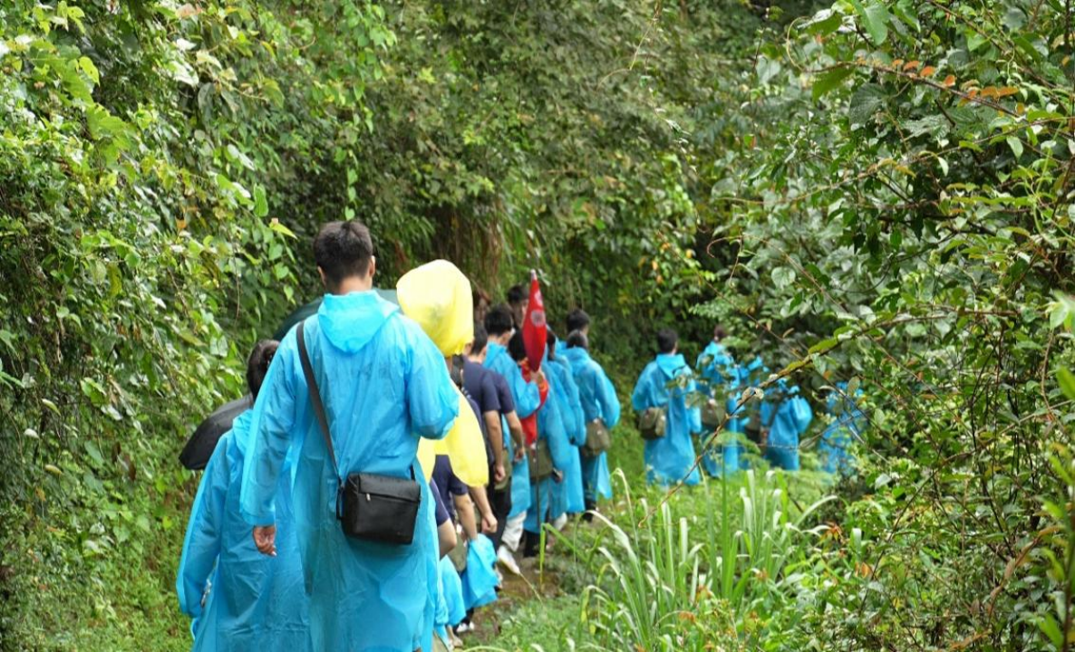 外出行军是意志与体能的淬炼。在“坝上急行军”任务中,3.5公里的崎岖山路、阴晴不定的山区天气、泥泞的碎石小路、茂密挡道的杂草......让队员们切身感受到当年红军“肩挑背驮运军粮”的艰辛。黄洋界哨口云雾缭绕,当年“黄洋界上炮声隆”的壮烈仿佛穿越时空;八角楼的清油灯下,青年凝视毛泽东写下《中国的红色政权为什么能够存在?》的木桌,思想的光芒穿透历史尘埃。