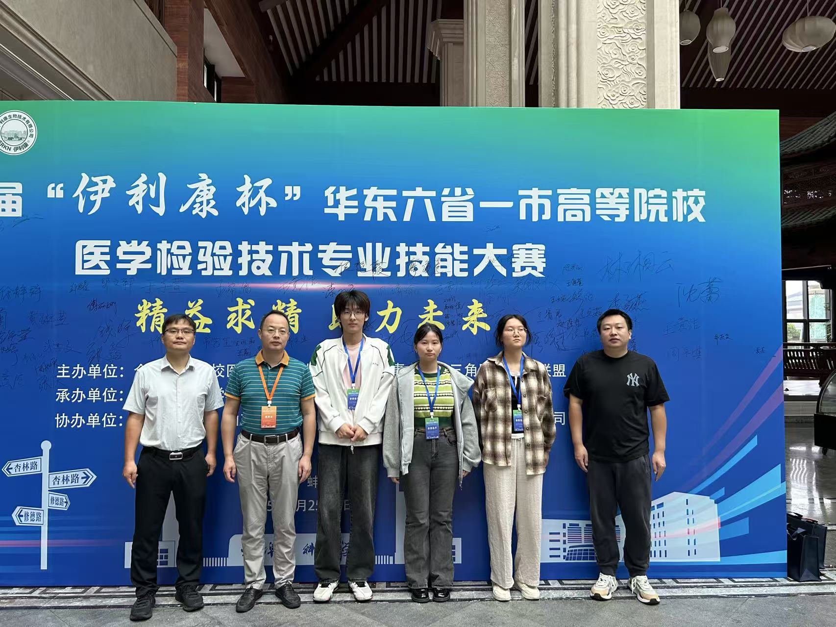 9月25日—27日,第六届“伊利康杯”华东六省一市高等院校医学检验技术专业技能大赛在蚌埠医科大学举行,来自上海交通大学、南京医科大学、东南大学、厦门大学、福建医科大学、安徽医科大学等29所高校的120多名学生参加大赛。经过一天半的紧张激烈角逐,我校团队获团体三等奖。
