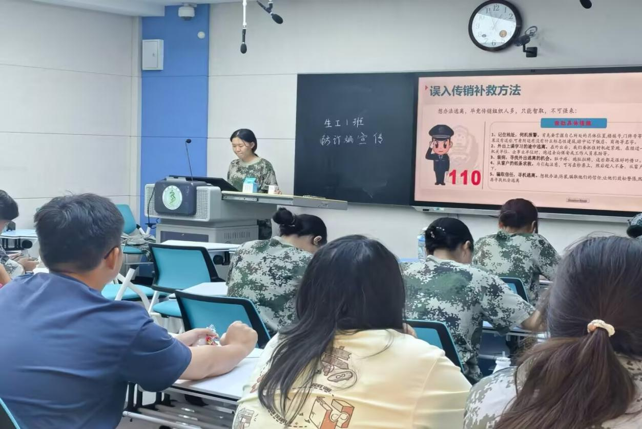针对2025级新生年级防电诈意识薄弱的实际情况,军训期间,年级各专业通过座谈研讨会、主题班会、年级大会等多种形式开展系列教育活动。新生班主任们深入所带班级全覆盖召开主题班会,进行预防电诈知识宣讲和交流。同时,新生辅导员发放调查问卷了解新生对于电诈的防范意识,有针对性地通过年级大会进行专题讲解。