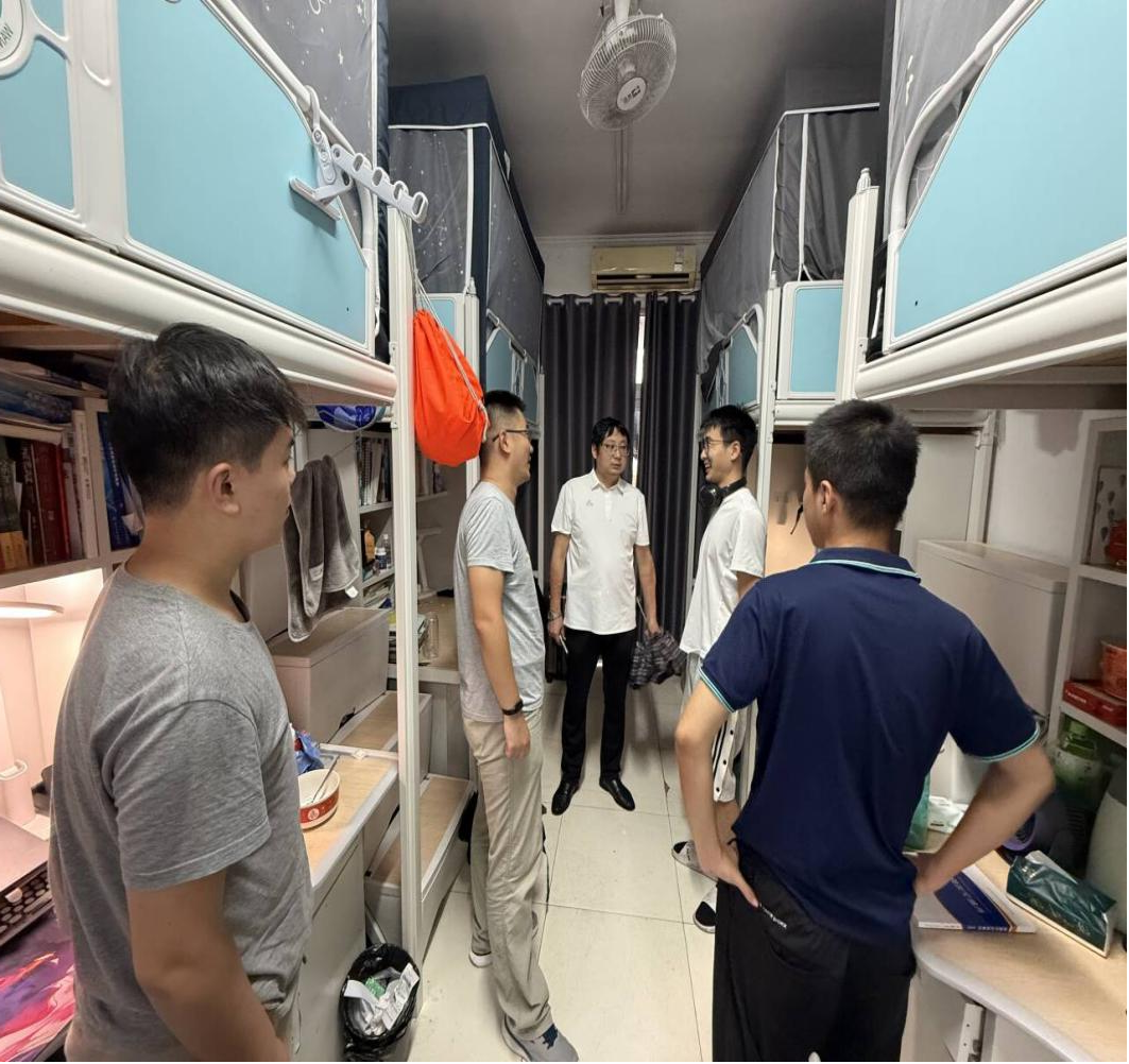为营造和谐稳定的校园环境,9月22日-25日,学院领导分别带领辅导员深入学院各年级学生宿舍,与同学们深入交谈,详细了解他们在学习、生活、心理等方面的实际情况,认真听取学生对宿舍管理、后勤服务、安全保障等方面的意见与建议,并对宿舍卫生、用电安全、防火防盗等注意事项进行了提醒,希望大家自觉遵守宿舍管理规定,主动增强安全意识,合理安排作息时间,假期保持通讯畅通。同时,在排查过程中,对发现的问题及时督促整改,确保宿舍安全无死角。