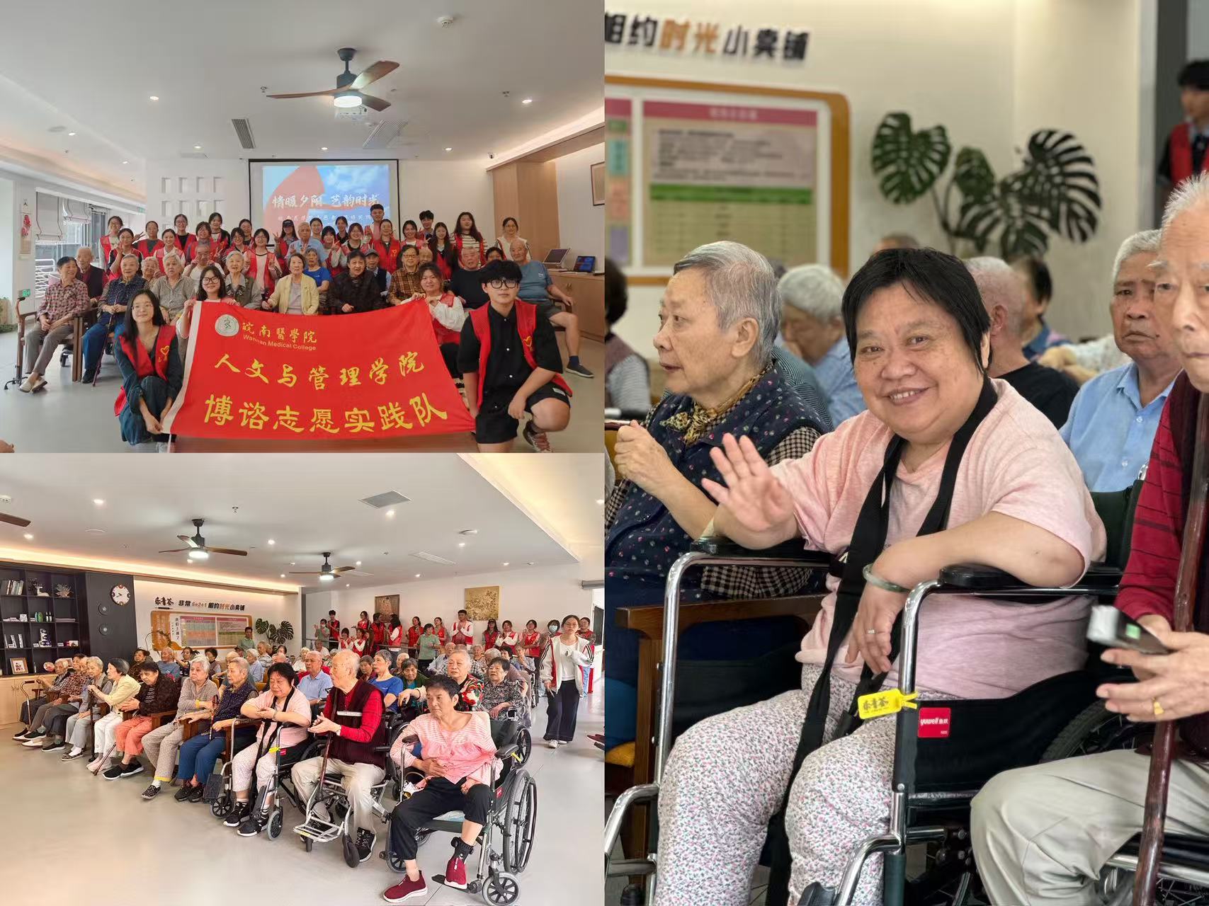 为弘扬尊老敬老传统美德,10月12日上午,人文与管理学院博谘志愿实践队走进乐青荟国信颐养院,开展“情暖夕阳,艺韵时光”主题文艺汇演活动,为老人们送去温暖与欢乐。