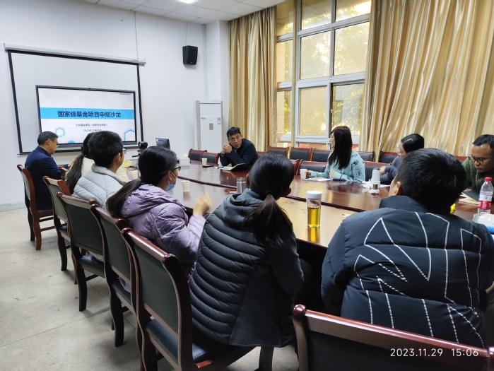 朱二刚结合自身研究领域及项目申报经验,重点阐述了国家级基金项目的选题、综述撰写、预期成果等相关问题。与会老师展开了热烈而富有针对性的讨论,并在前期基础、团队建设、创新点凝练、结构布局完整性等方面充分交流经验,纷纷表示将尽早谋划,认真打磨项目申请书,争取在2024年国家级基金项目申报中有所收获。
